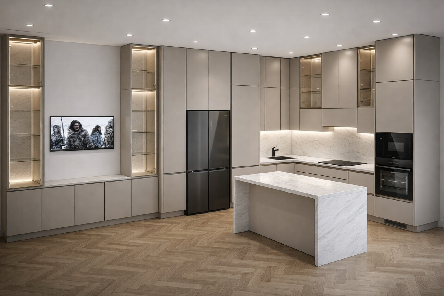 Мы предлагаем фасады из массива ольхи, вишни, липы, ясеня, каштана, из МДФ, эмали (глянец и мат), шпона, пластика и других качественных материалов. Все они надежны и экологичны. Подбор материалов осуществляется с дизайнером при проектировании. Вы сможете оценить текстуру и оттенки в салоне или по образцам, которые привезет дизайнер к вам на дом.