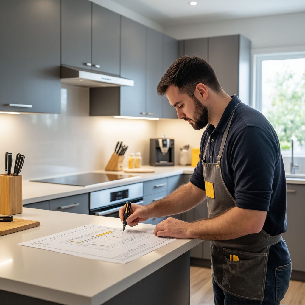 Когда предварительный дизайн-проект «Ваши Кухни» согласован, построен и принято решение приобрести определенную модель кухонного гарнитура, необходимо перед заказом мебели, провести контрольные замеры кухни.